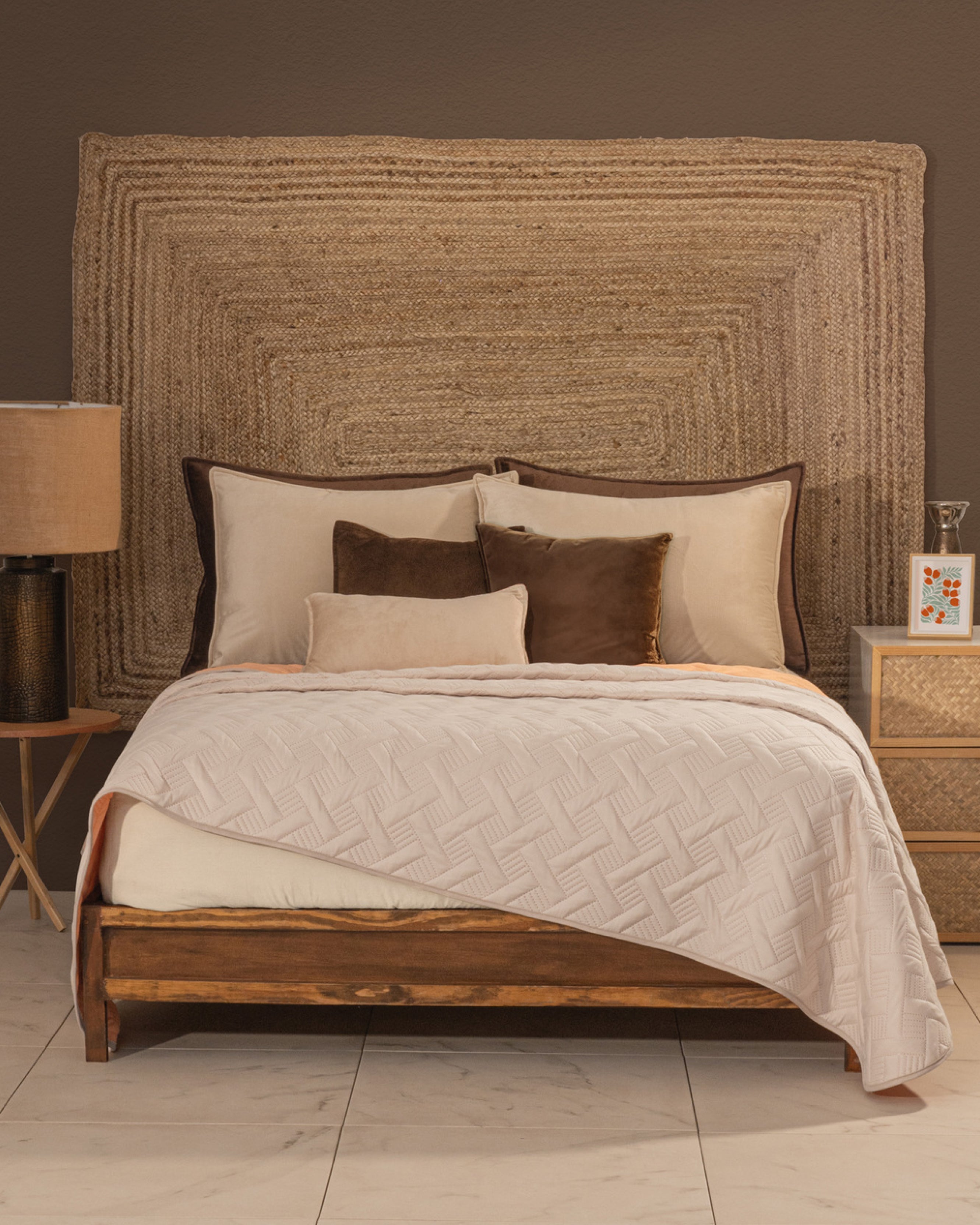 Bondad es ligereza con intención. Su textura suave y capitonado moderno le dan a tu cama una presencia ordenada, minimalista y elegante. Perfecto para espacios cálidos donde quieres vestir sin saturar, pero con carácter. Su doble vista te permite variar el ambiente con un solo movimiento, siempre manteniendo la armonía y la frescura.