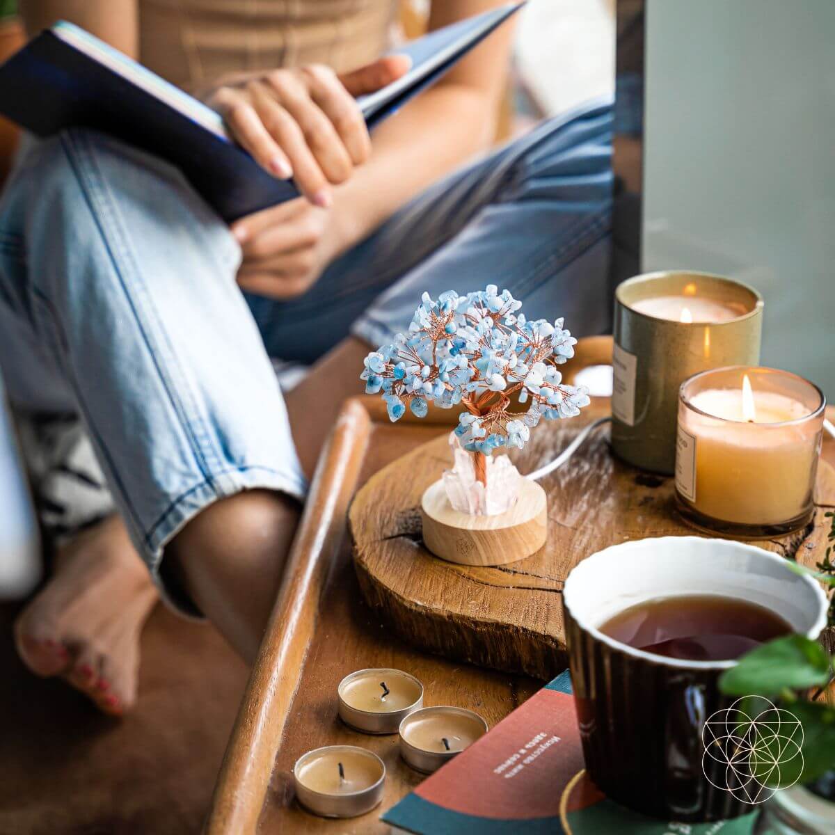 Guardian Angel Lamp of Protection - Aquamarine Tree