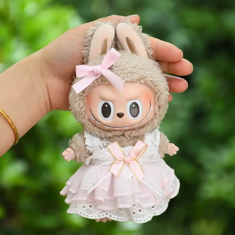 Labubu 17cm Pink Bowknot Gauze Dress, Cute Princess Outfit【Apparel Only]