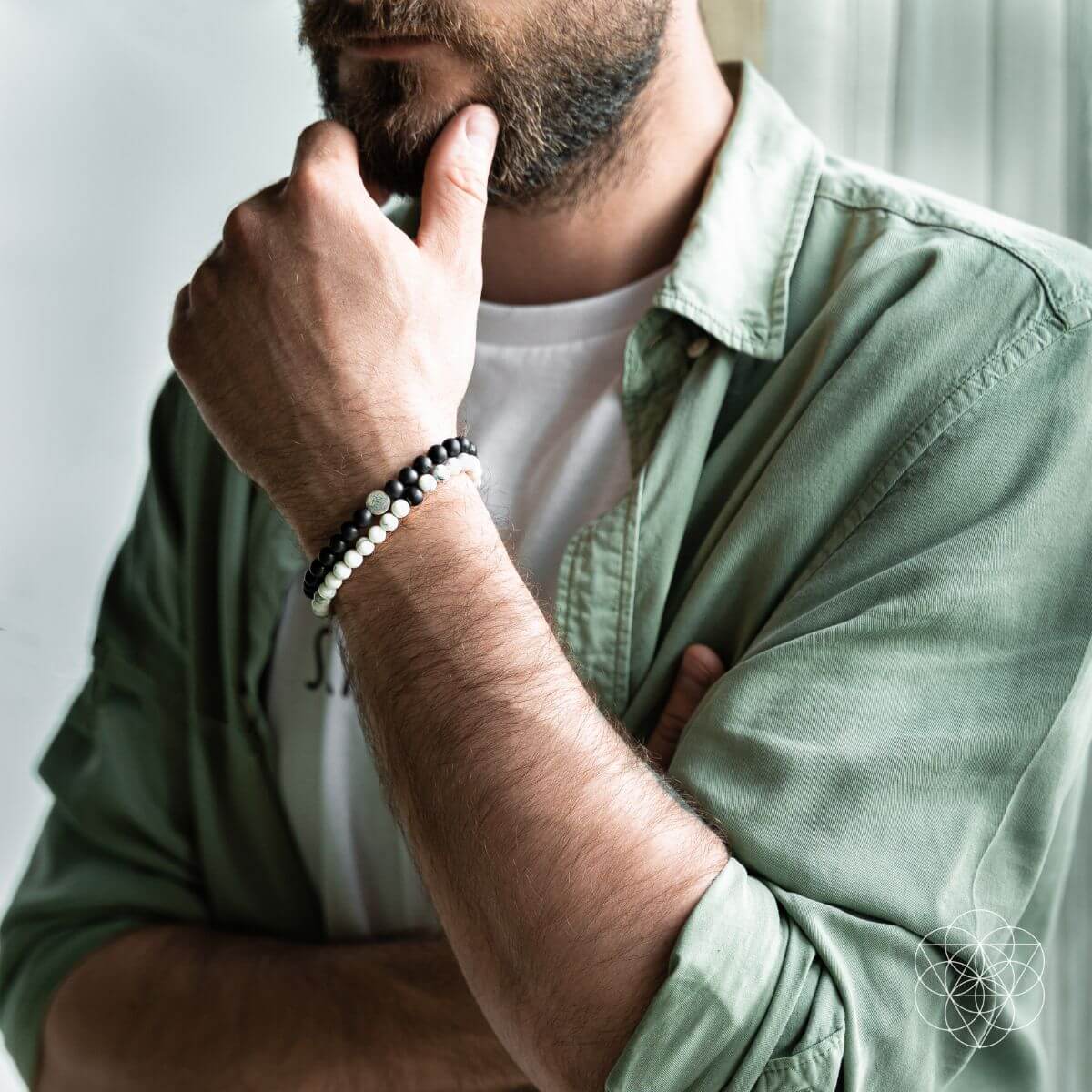For those seeking a fashionable accessory that symbolizes balance and calm, this 2-in-1 bracelet set contains 2 powerful crystals - Shungite and Howlite. Shungite is believed to symbolize stability and strength, offering a sense of peaceful energy. It's seen as a representation of cleansing negativity from your surroundings.