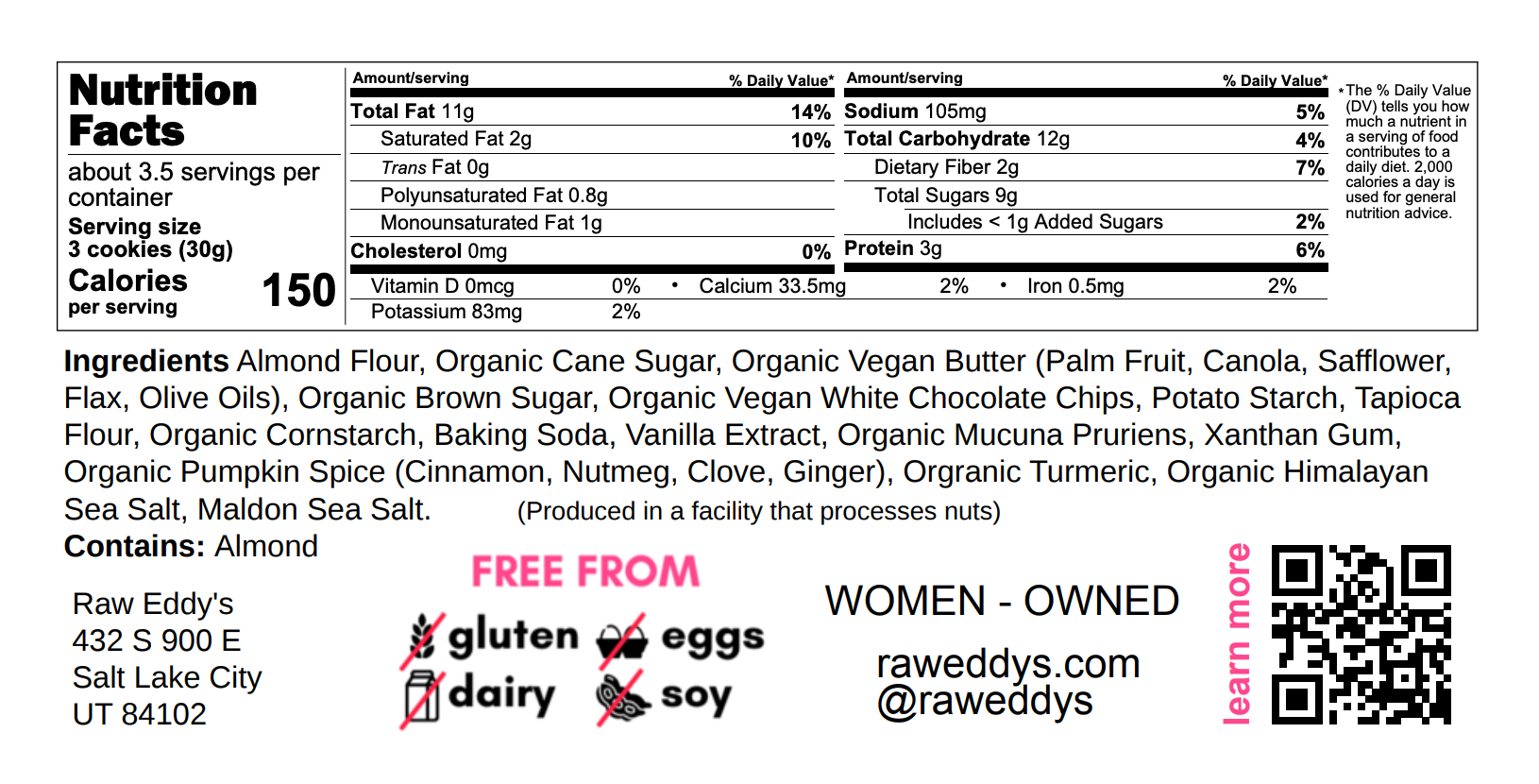 Chewy, spiced like gingerbread with cinnamon and nutmeg, smooth white chocolate, and a touch of sea salt. Sweet, salty, and perfectly fall.