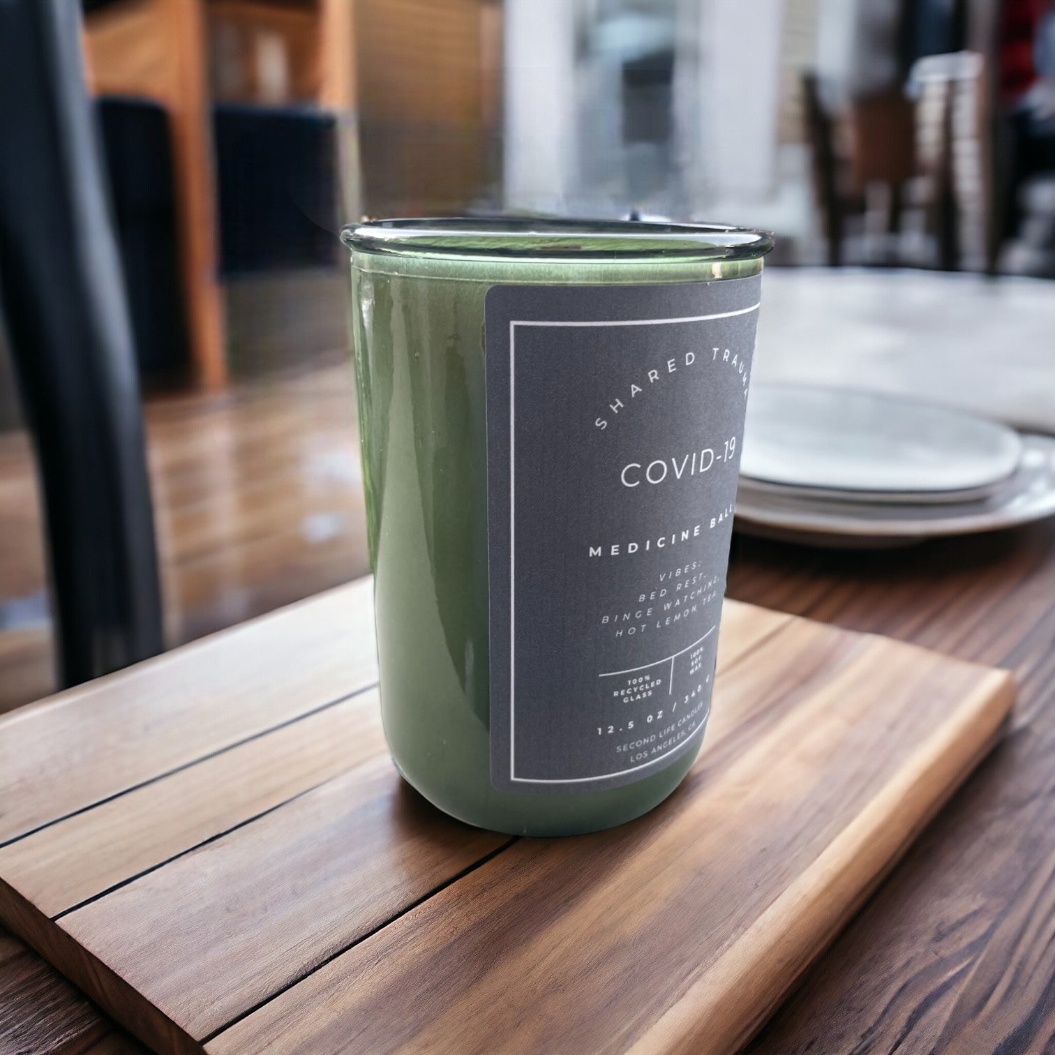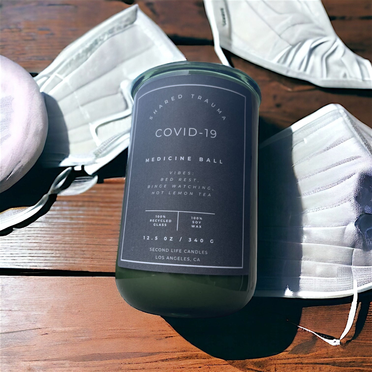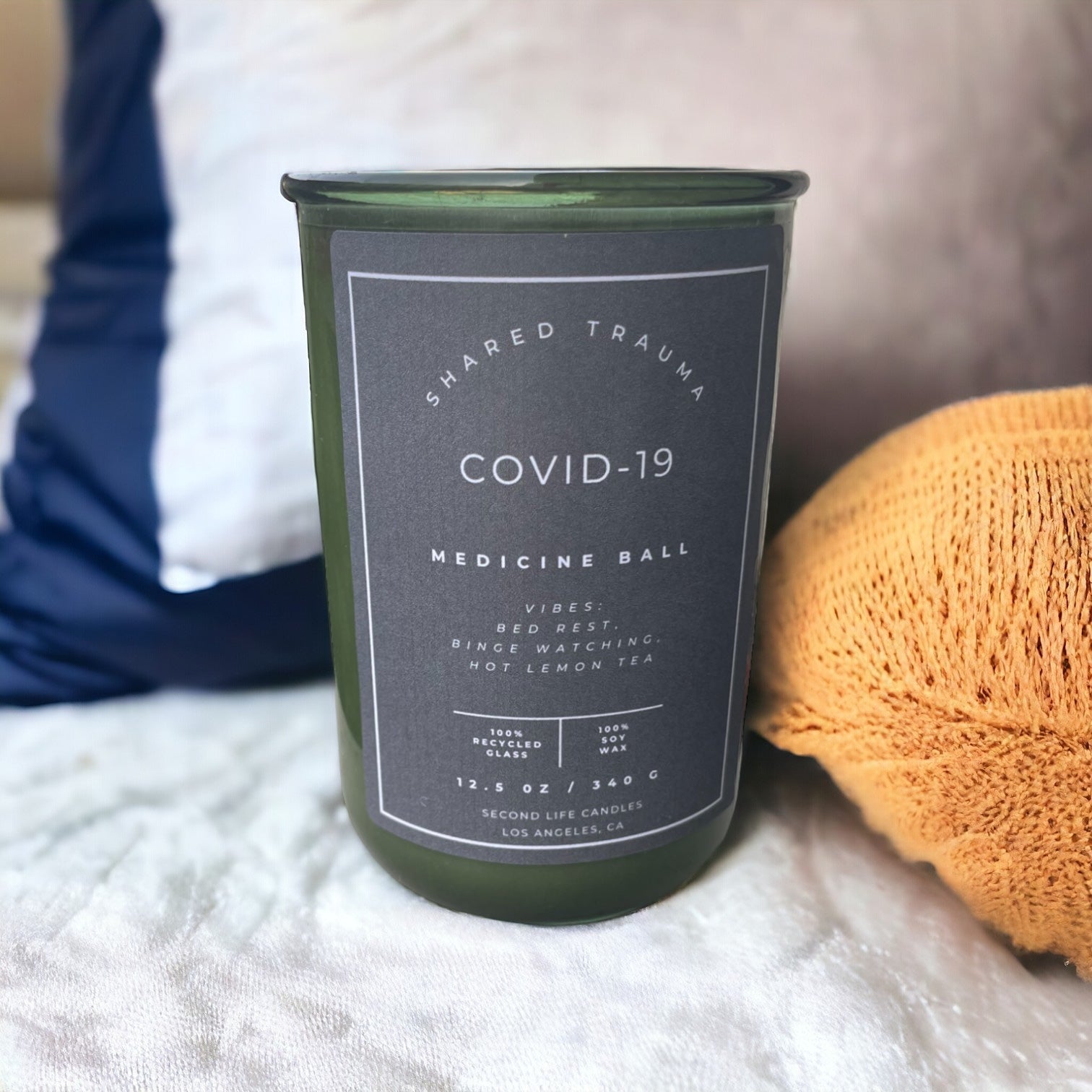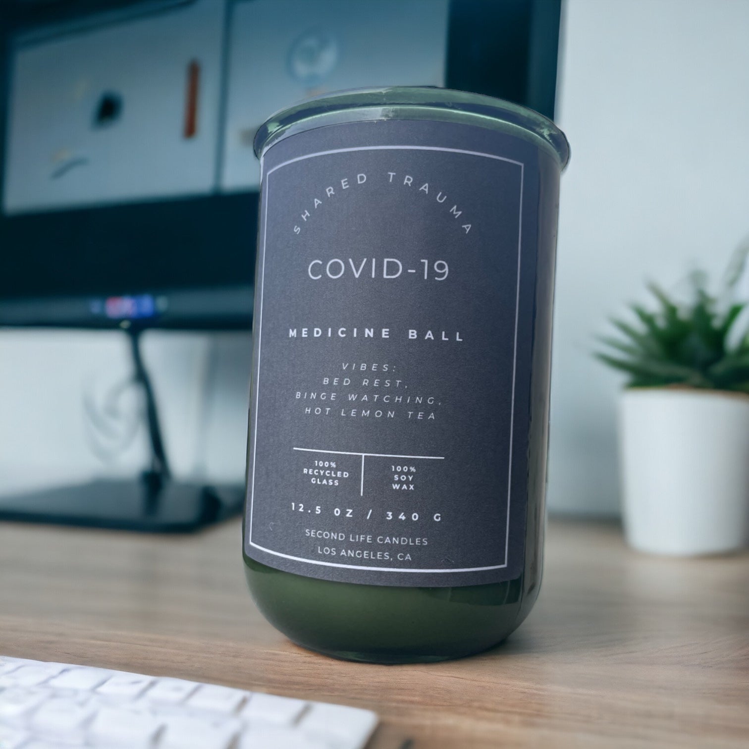 Ā š For the global phenomenon we all experienced, but never wanted, introducing "Covid-19," the candle curated to encapsulate the shared trauma of "safer at home." A comforting blend of lemon essential oils, peach, and mint, you'll get a nostalgic whiff of the Medicine Ball tea that marked our unique pandemic journey, on the rare occasion you could find an open coffee shop.