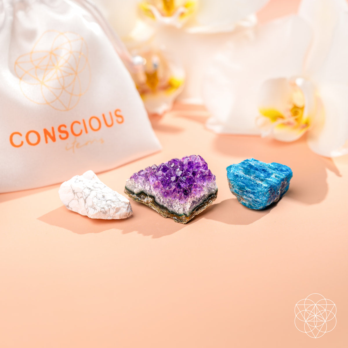 Together, these three stones work in harmony—clearing mental fog, restoring balance, and reminding you that peace is always within reach. Your trio arrives nestled in a soft satin bag with a guidance card to help you begin your practice with confidence.