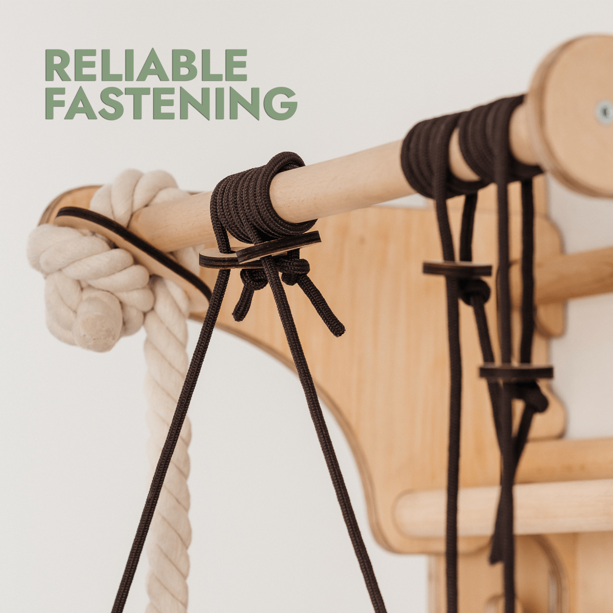 A dynamic ensemble that includes the Disk Rope Swing, Gymnastics Rings, and Climbing Rope Ladder, each ensuring endless delight and vigorous physical engagement.